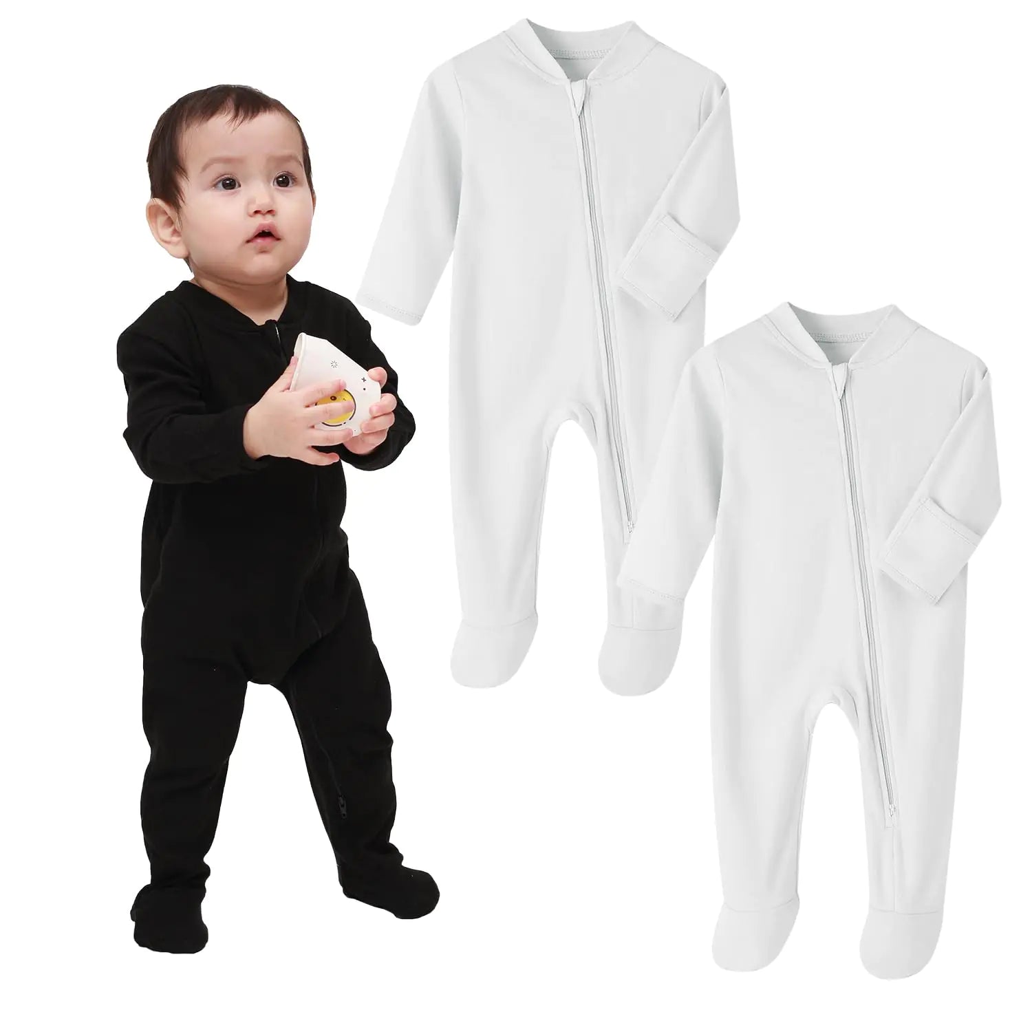 ["Made of 95% rayon5% spandex.Soft and comfortable for your babys sensitive skin." Smooth 2 way zippers opening makes this footed pajamas dressing and changing diaper easier. This baby footie sleeper features grip on the feet for extra stability. Great for little baby learning walk. Roll-up sleeve design to avoid scratching while sleepingZip Guard at neck and Zipper Garage protect chin and skin. Ideal for 3-24 Months baby shower gifts baby pajamas for sleeping or everyday wear. Machine wash color separately and gently cycle only do not bleach. Tumble dry on low heat.]