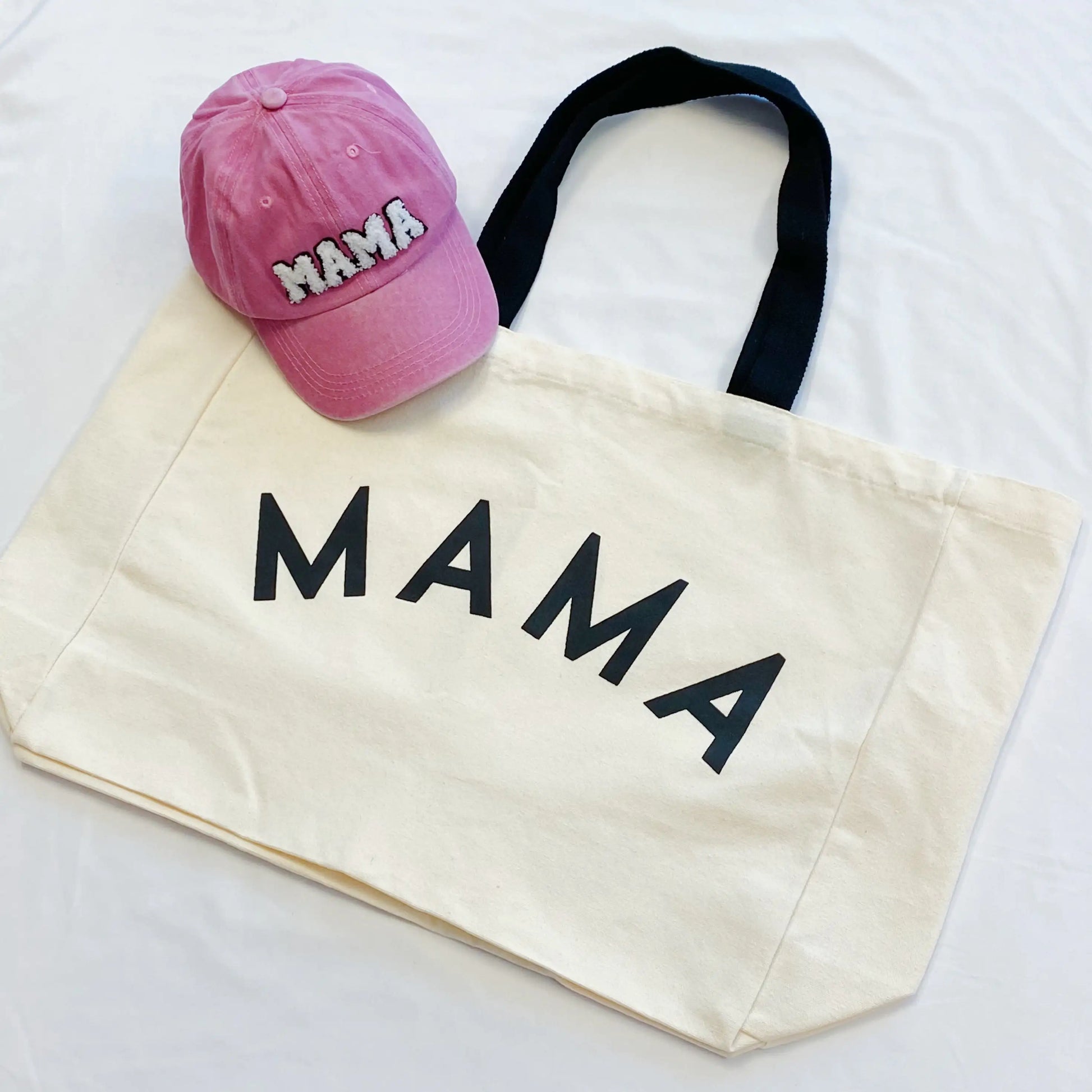The Mama Canvas Tote is a stylish and durable everyday bag. It is made from canvas fabric and features an eye-catching MAMA design printed in a nice font.